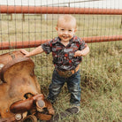 Crafted with stylish pearl snap buttons, this Short Sleeve Pearl Snap shirt will look handsome on your little one! The durable material makes this shirt perfect for family parties and days on the ranch. Shea Baby Short Sleeve Snap shirts are a must for every cowboy!