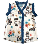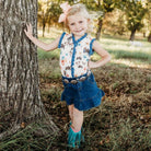 Our Ranch Hand Denim Shirt is the perfect blend of comfort, style and durability!! This shirt is perfect for family parties or days on the ranch. This is a must have in your little girls Summer wardrobe!