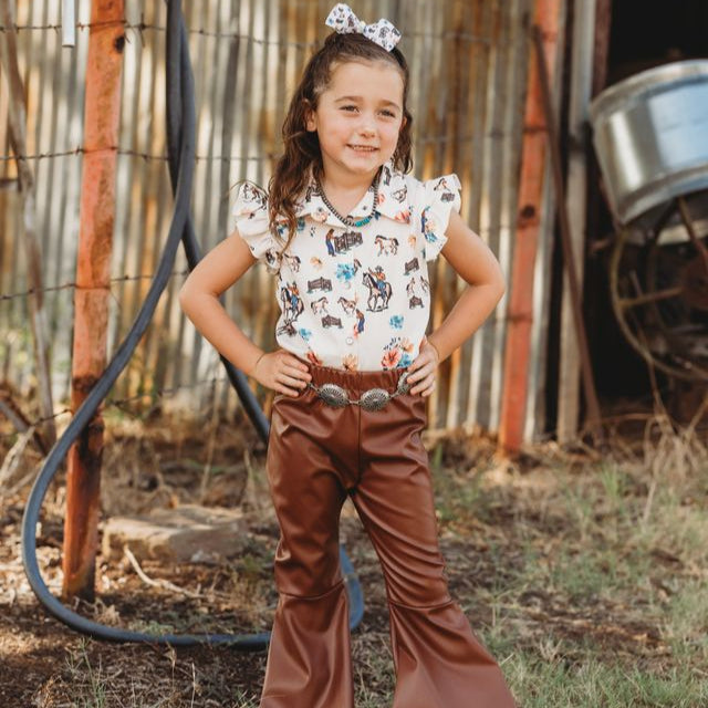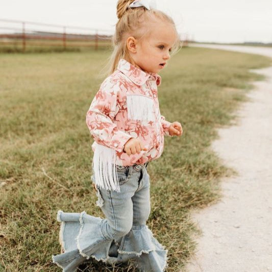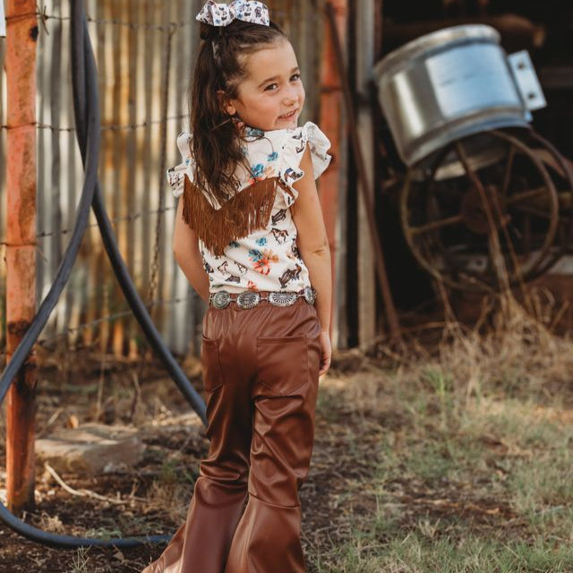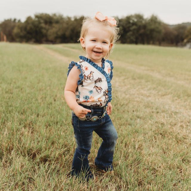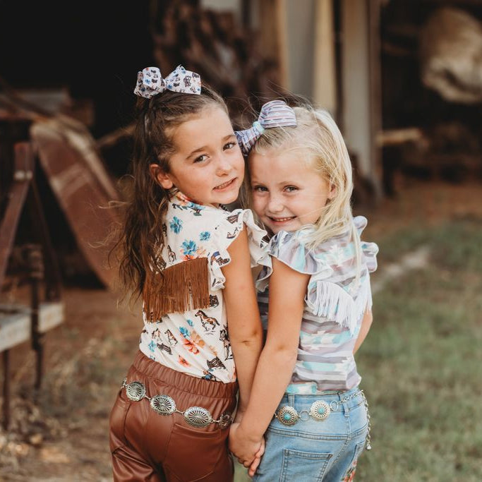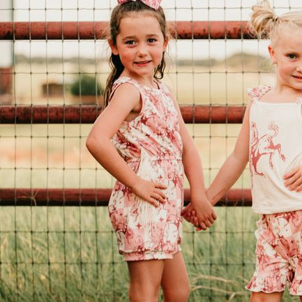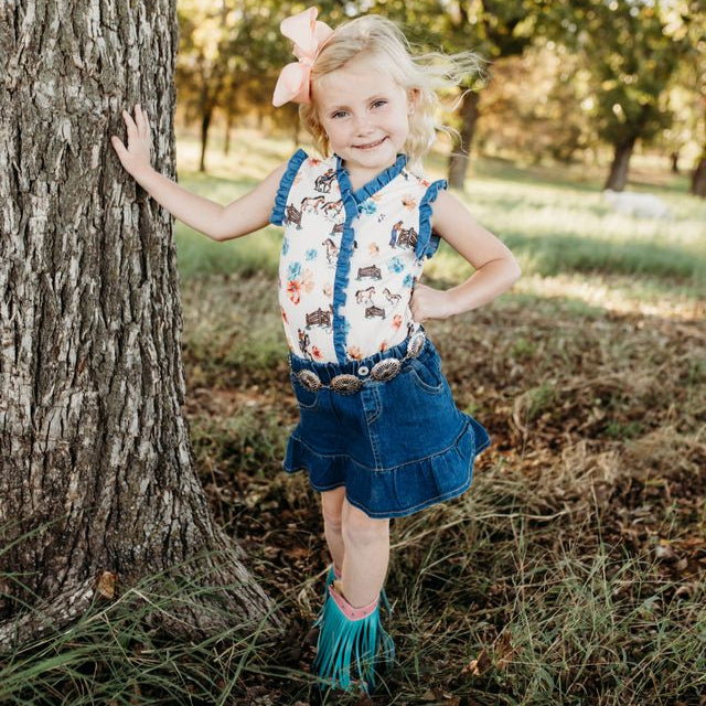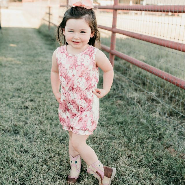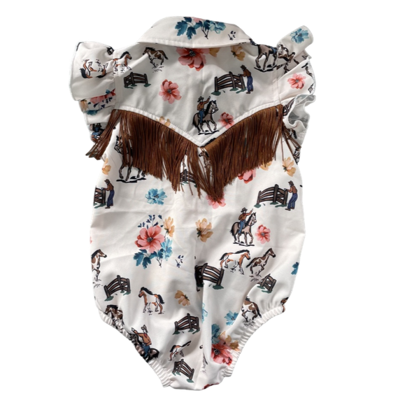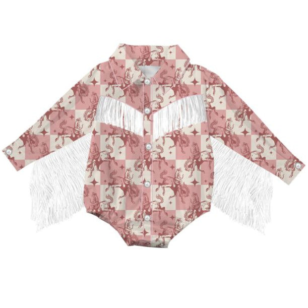 Plaid Bucking Horse Fringe Romper, (2T-5T)