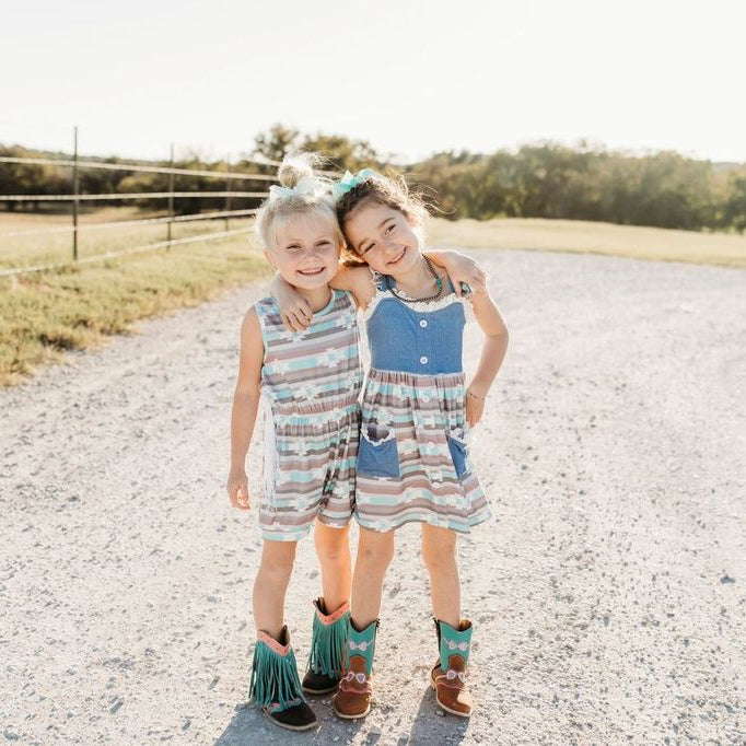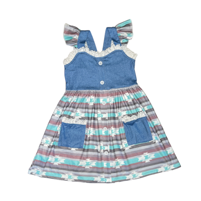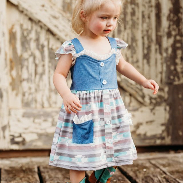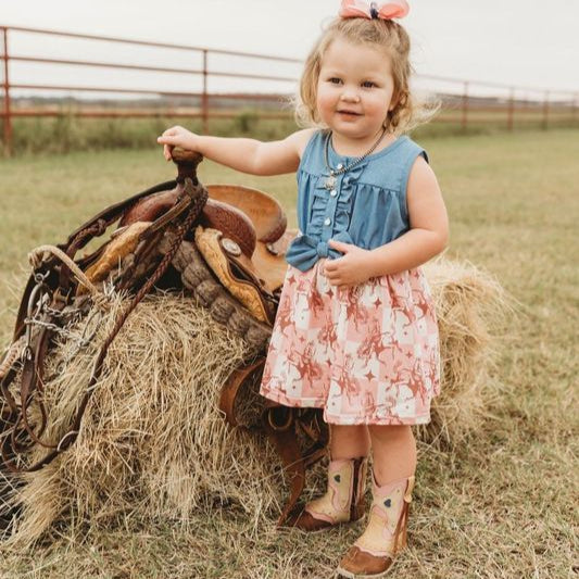 Plaid Bucking Horse Denim Dress, (2T-5T)