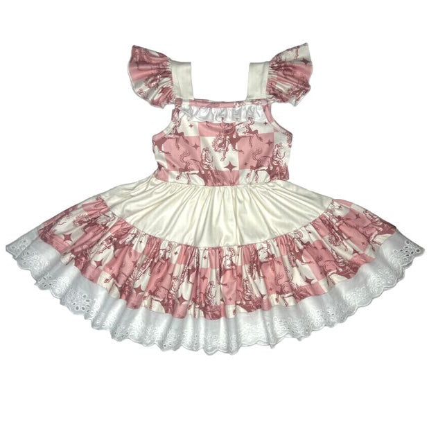 Plaid Bucking Horse Ruffle Dress, (2T-5T)