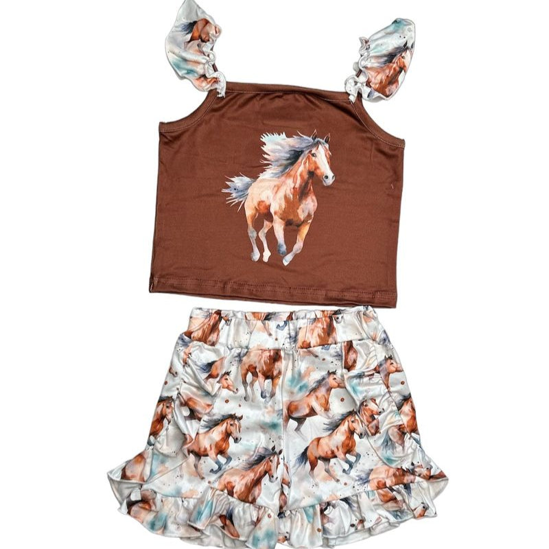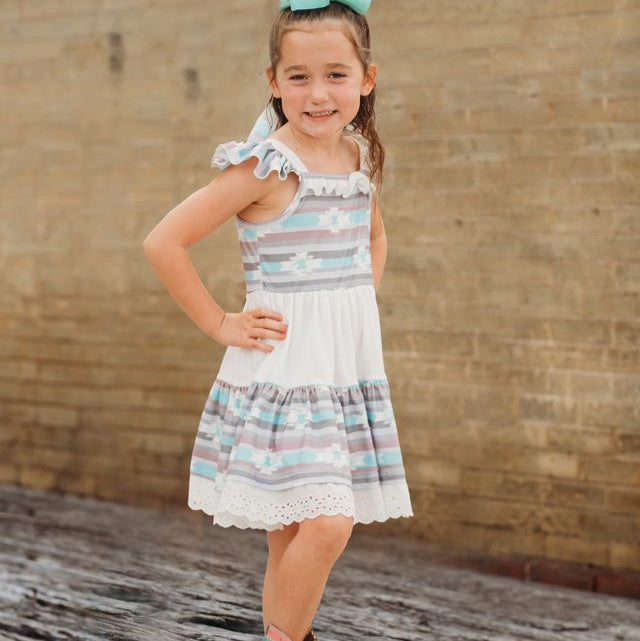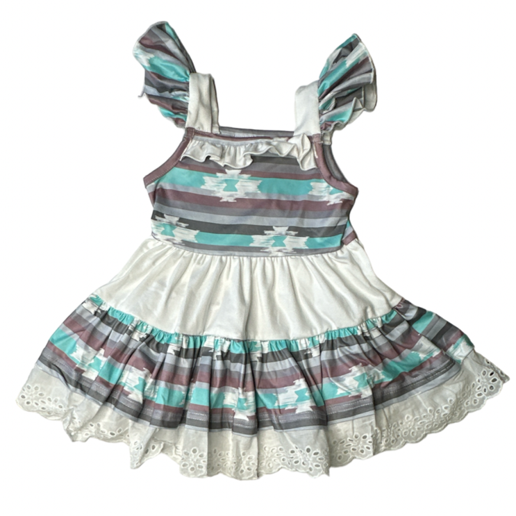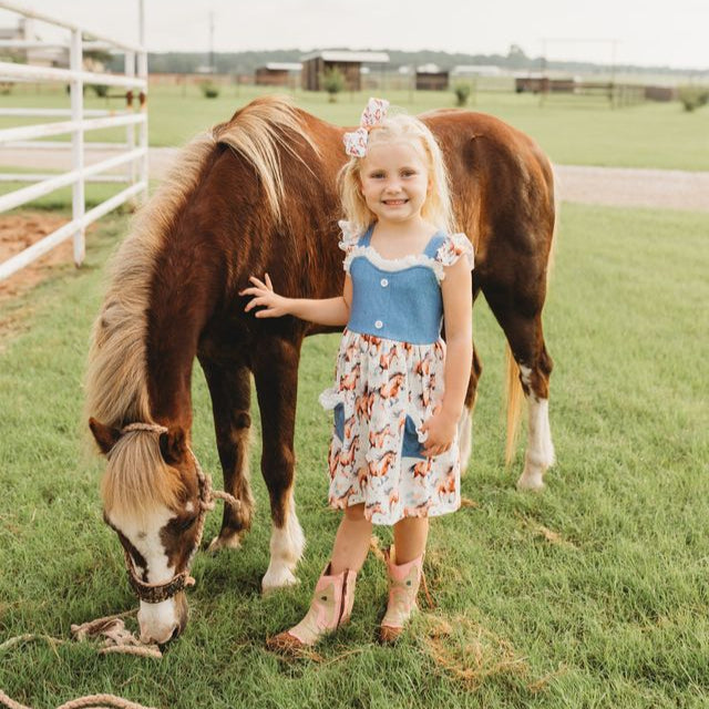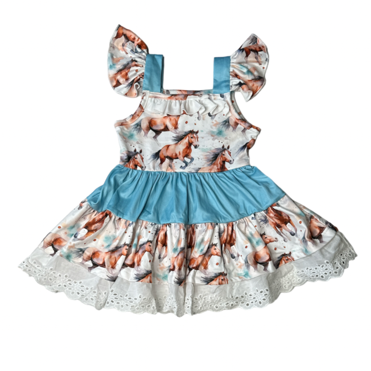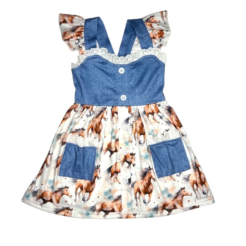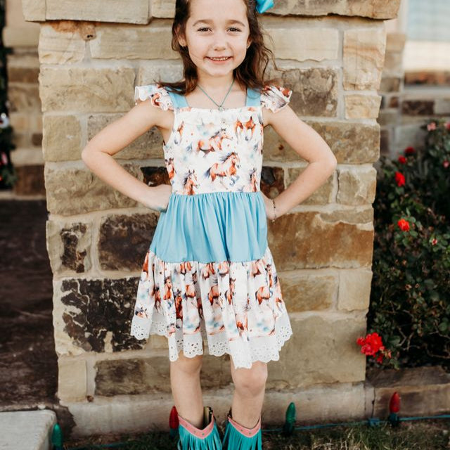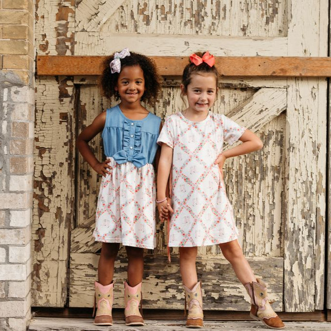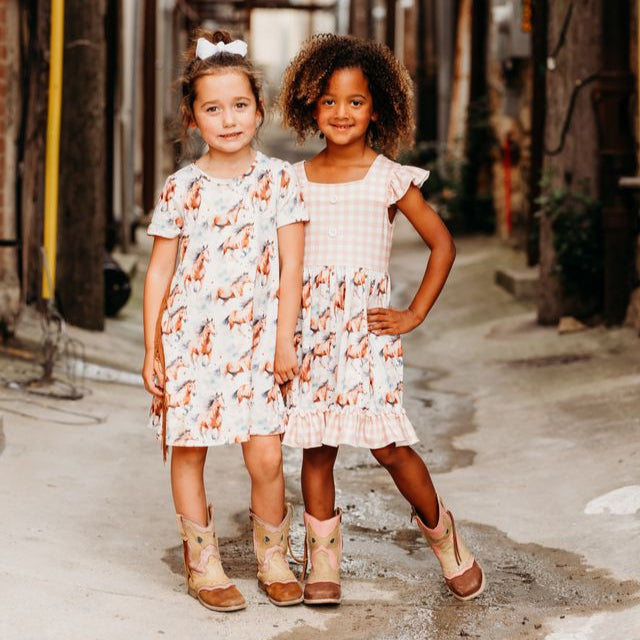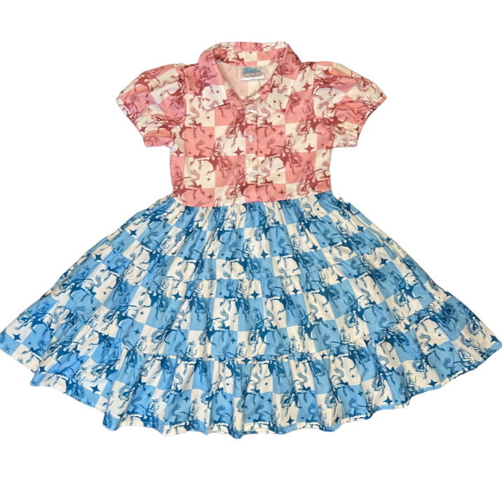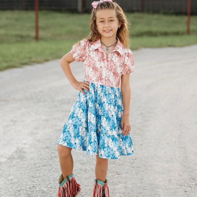 Two Toned Plaid Bucking Horse Flow Dress, (2T-5T)