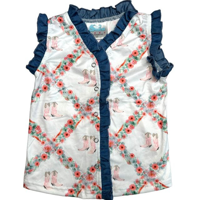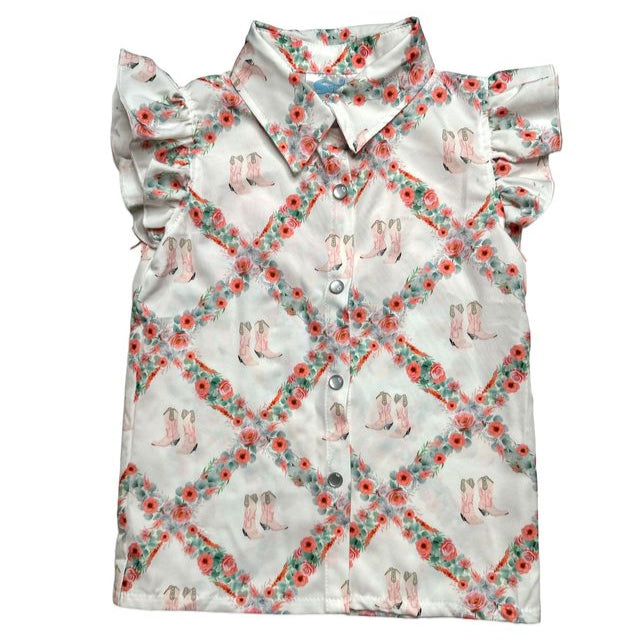 Floral Boot SS Pearl Snap Shirt, (2T-5T)