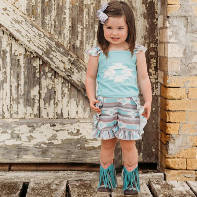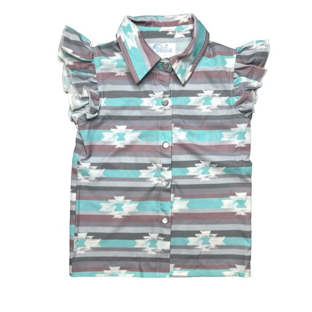 Teal Aztec SS Pearl Snap Shirt, (2T-5T)