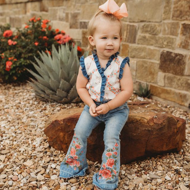 Floral Boot Flare Denim Jeans, (2T-5T)