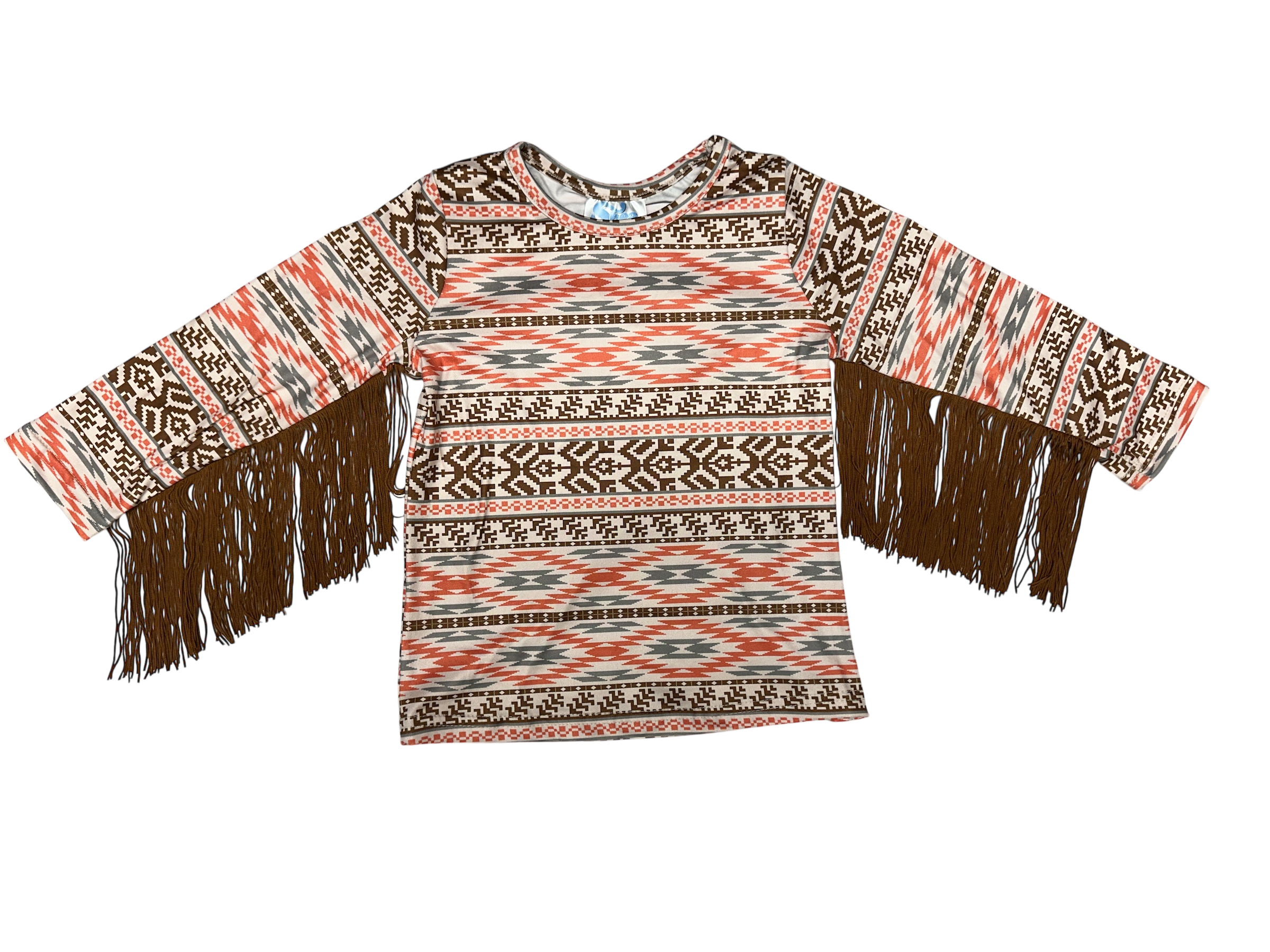 Brown Aztec w/t Fringe Long Sleeve Shirt (2T-5T)