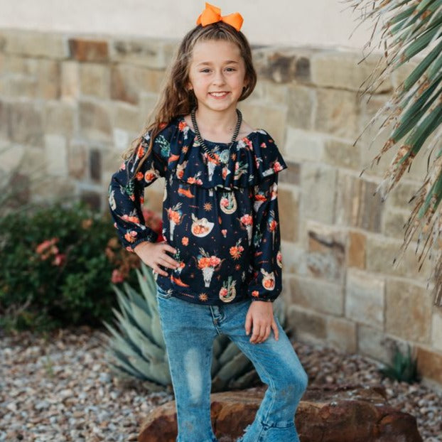 Black Floral Skull Long Sleeve Shirt Toddler (2T-5T)