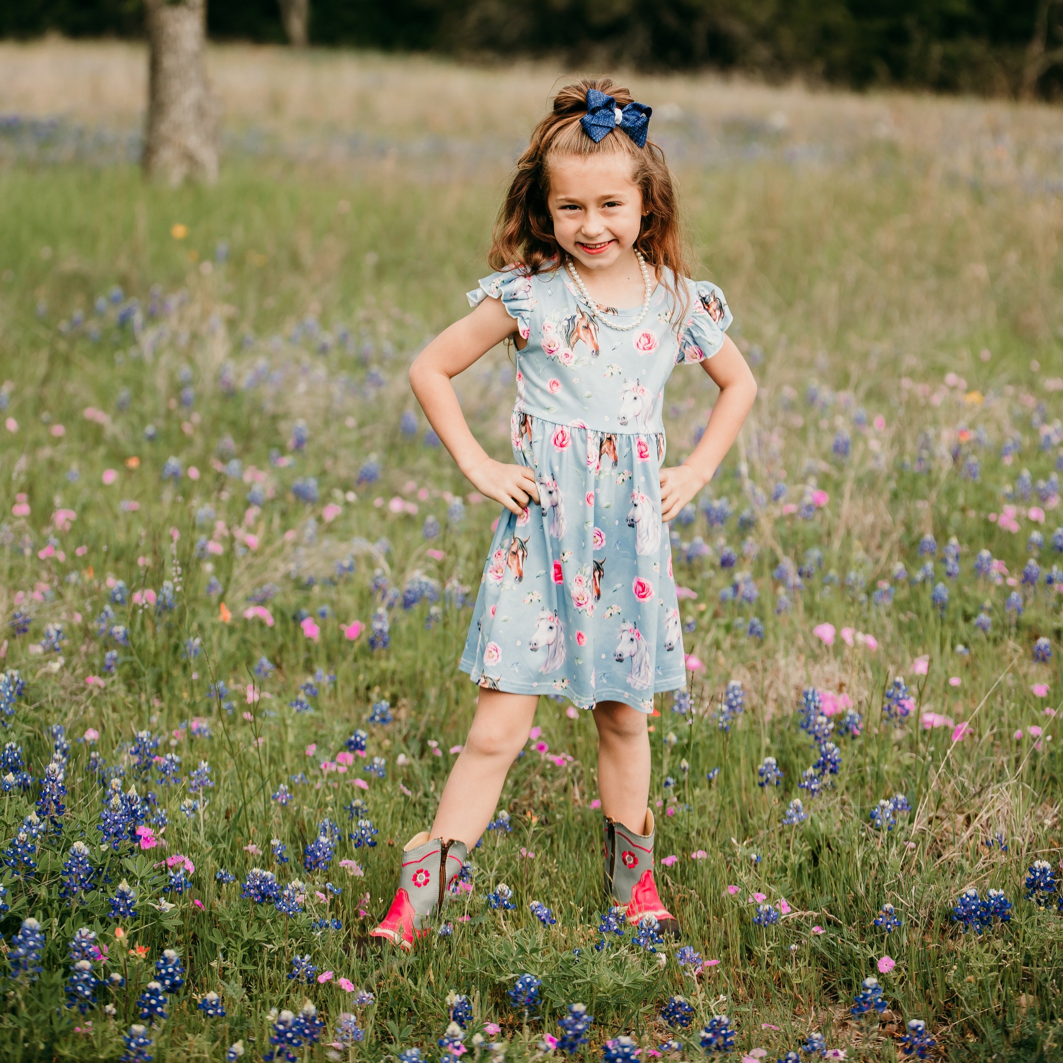 Blue Horse Floral Dress Toddler (2T-5T)