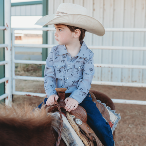 Crafted with stylish pearl snap buttons, this Long Sleeve Brand Print Pearl Snap Shirt will look handsome on your little one! Made from light weight material, this top is perfect for keeping little cowboys cool and protected in the summer months!