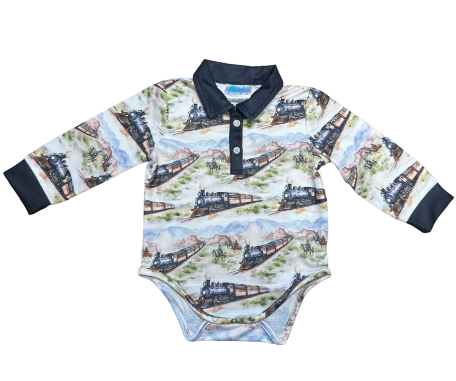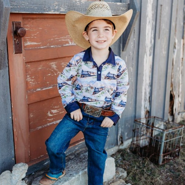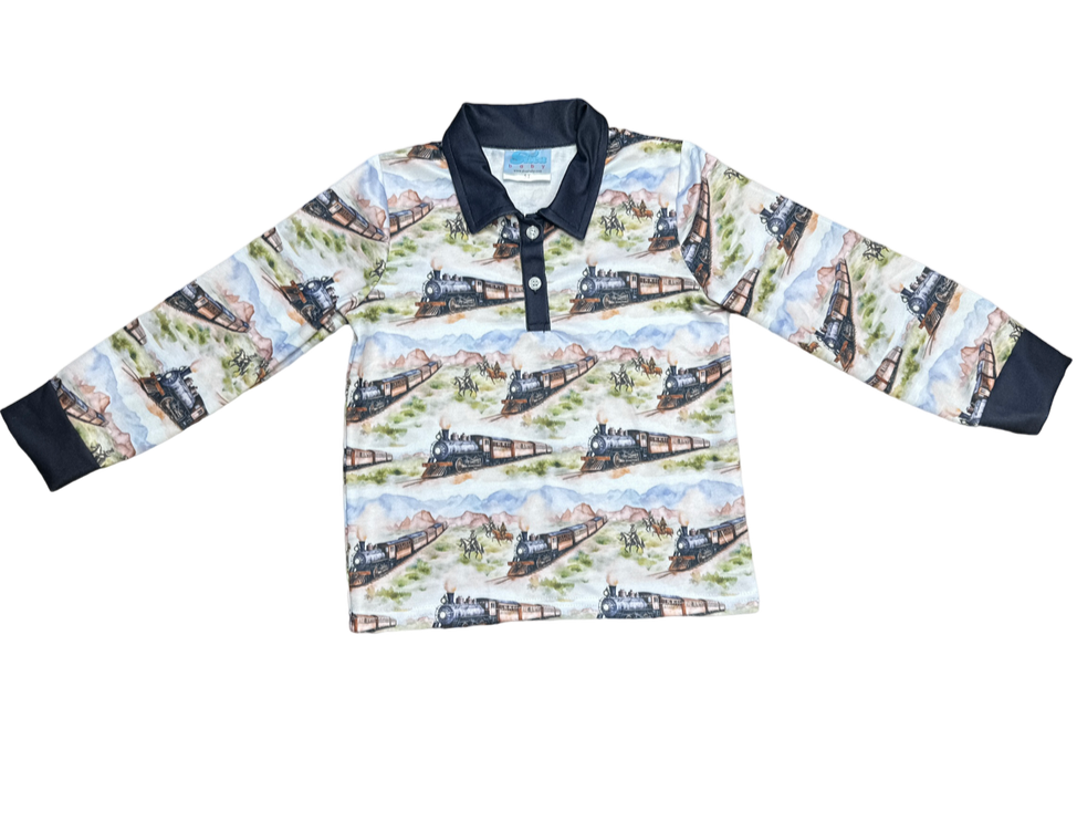Western Train Long Sleeve Polo Shirt (2T-5T)