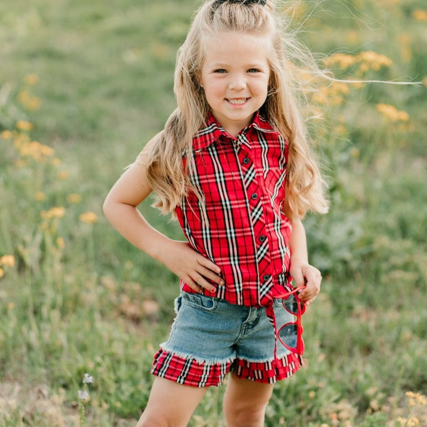 Denim Shorts w/ Plaid Riffle Toddler (2T-5T)
