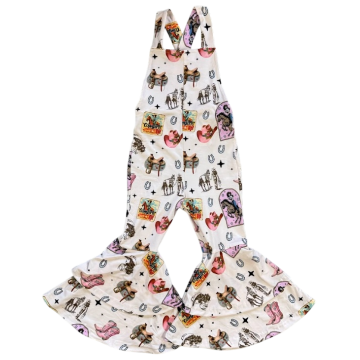Pink Vintage Cowgirl Bell Overalls (2T-5T)