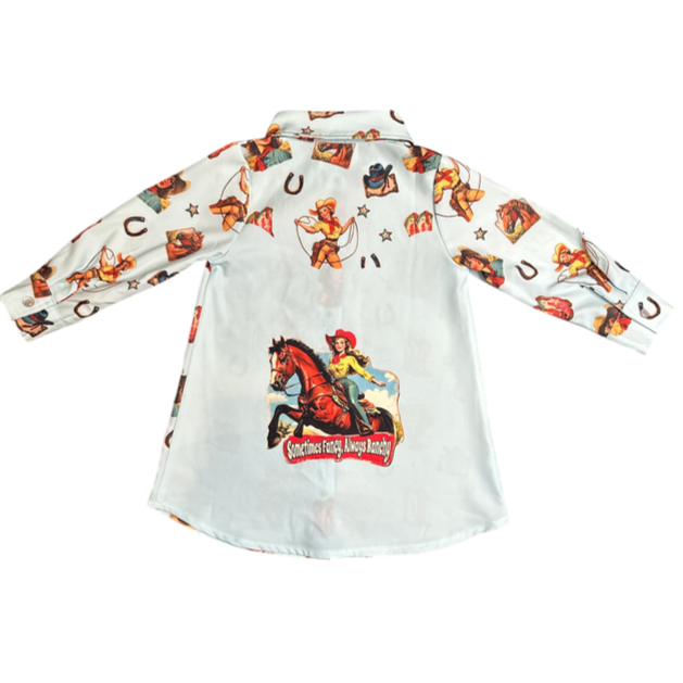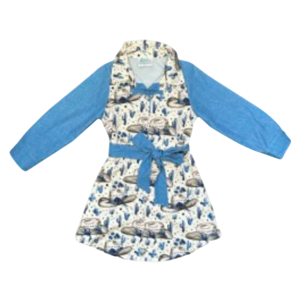 Blue Vintage Cowgirl LS Pearl Snap Dress (2T-5T)