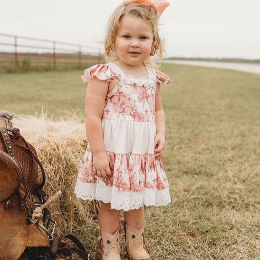 This adorable Plaid Bucking Horse Ruffle Dress is a perfect blend of comfort and style! Crafted with lightweight and breathable fabric, its the perfect Summer Dress for your little cowgirl!