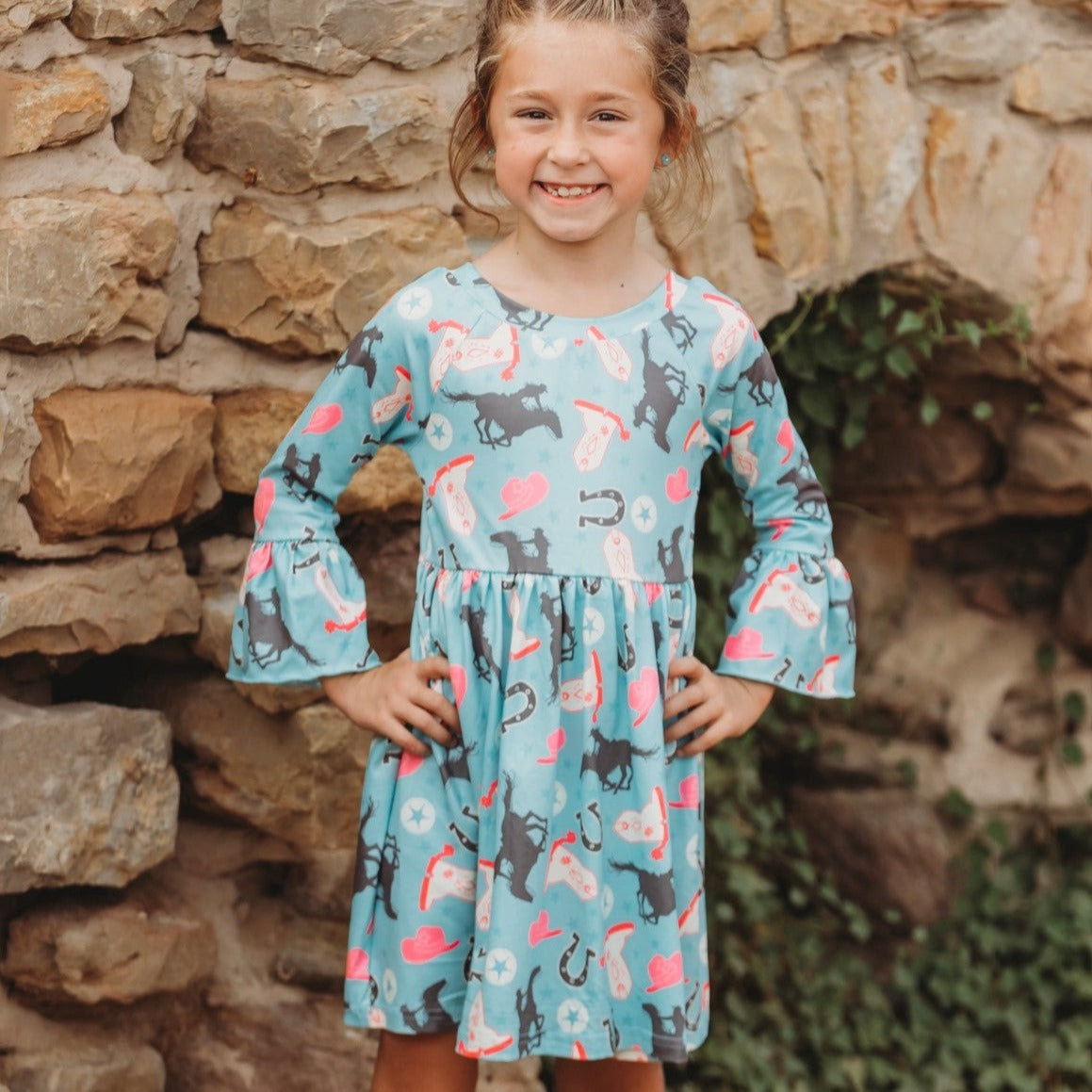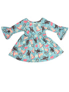 Turquoise Running Horse Bell Sleeve Dress Toddler (2T-5T)