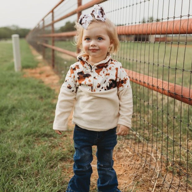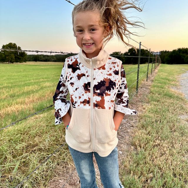 Cowprint Fleece Zip Up Sweatshirt (2T-5T)