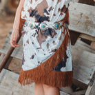 If your little ones are into being Unique, this is the skirt for you! Our Brown Cowprint Fringe Skirt is a staple in any closet. Paring this skirt with our Denim Fringe Jacket is a must!