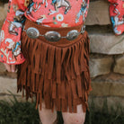 What is not to love about this Brown Fringe Suede Skirt? Soft, stylish and ALL the fringe for a pop of fun! Dressed up or down, this skirt is perfect for any outing and will sure make your little one feel special! Check out the concho belt for a splash of color.