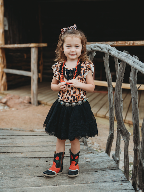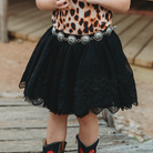 The Black Lace Chiffon Skirt matches all our Shea Baby tops, and Shea Baby Boots.