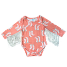 This adorable long sleeve fringe shirt and onesie is the perfect addition to any fall and winter collection! Soft, comfortable and stylish!