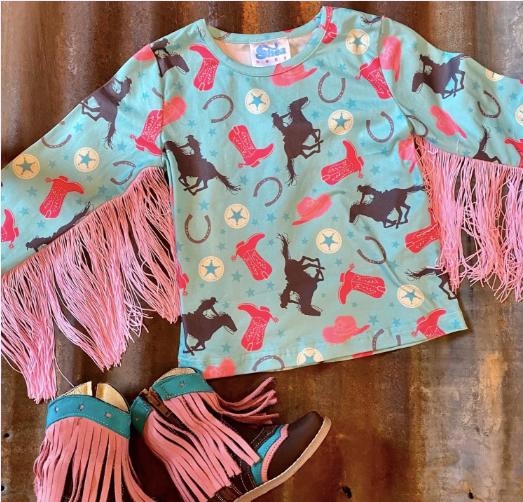 Turquoise Cowgirl Long Sleeve Top (2T-5T)