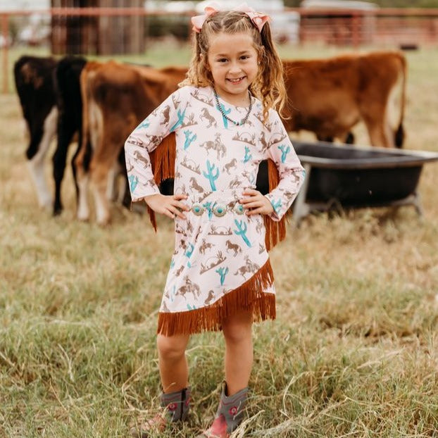 Pink Gettin' Western w/t Fringe Long Sleeve Shirt (2T-5T)