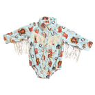Crafted with stylish pearl snap buttons, this Blue Vintage Cowgirl LS Pearl Snap Shirt will look stylish on your little one! The durable material makes this shirt perfect for family parties and days on the ranch. Shea Baby Long Sleeve Snap shirts are a must for everyone!
