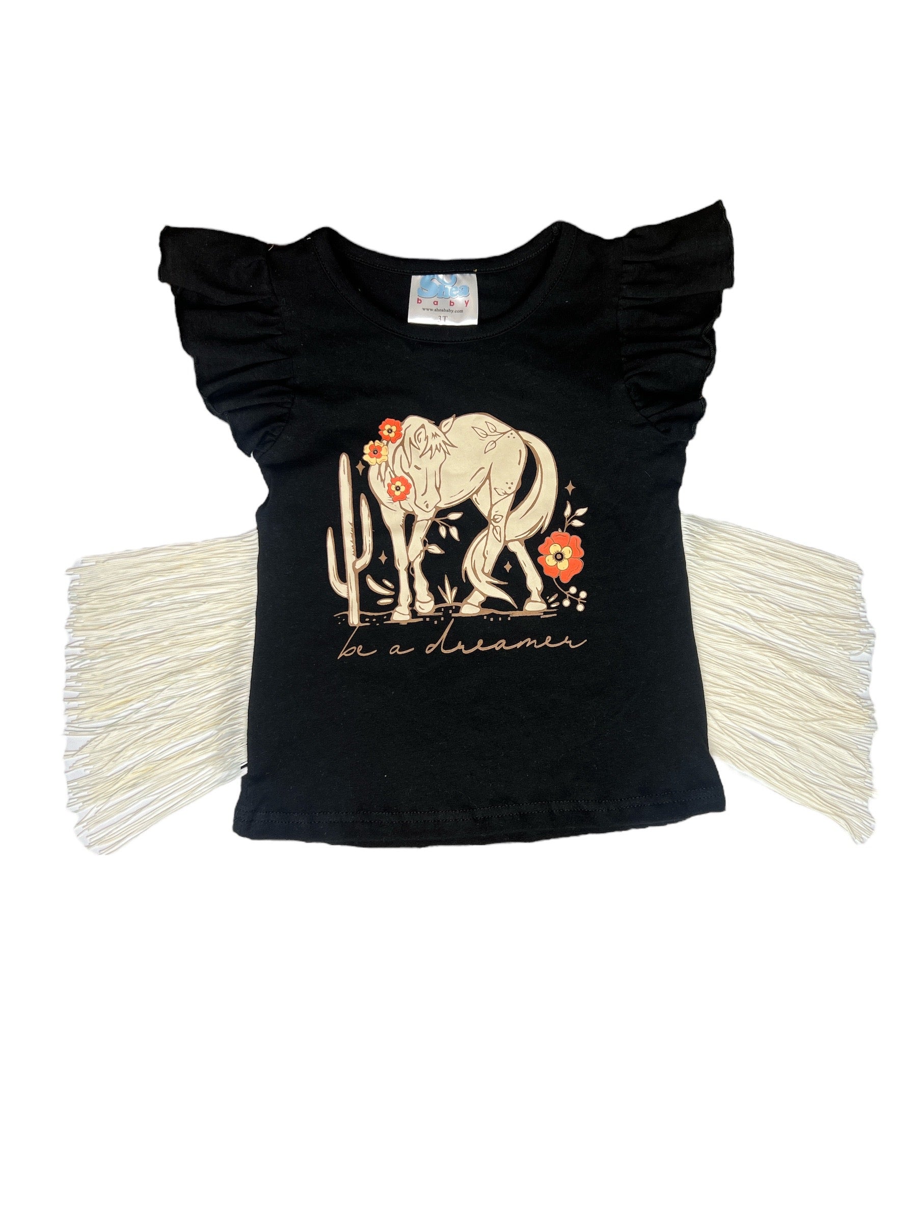 Black Be a Dreamer Fringe Shirt (2T-5T)