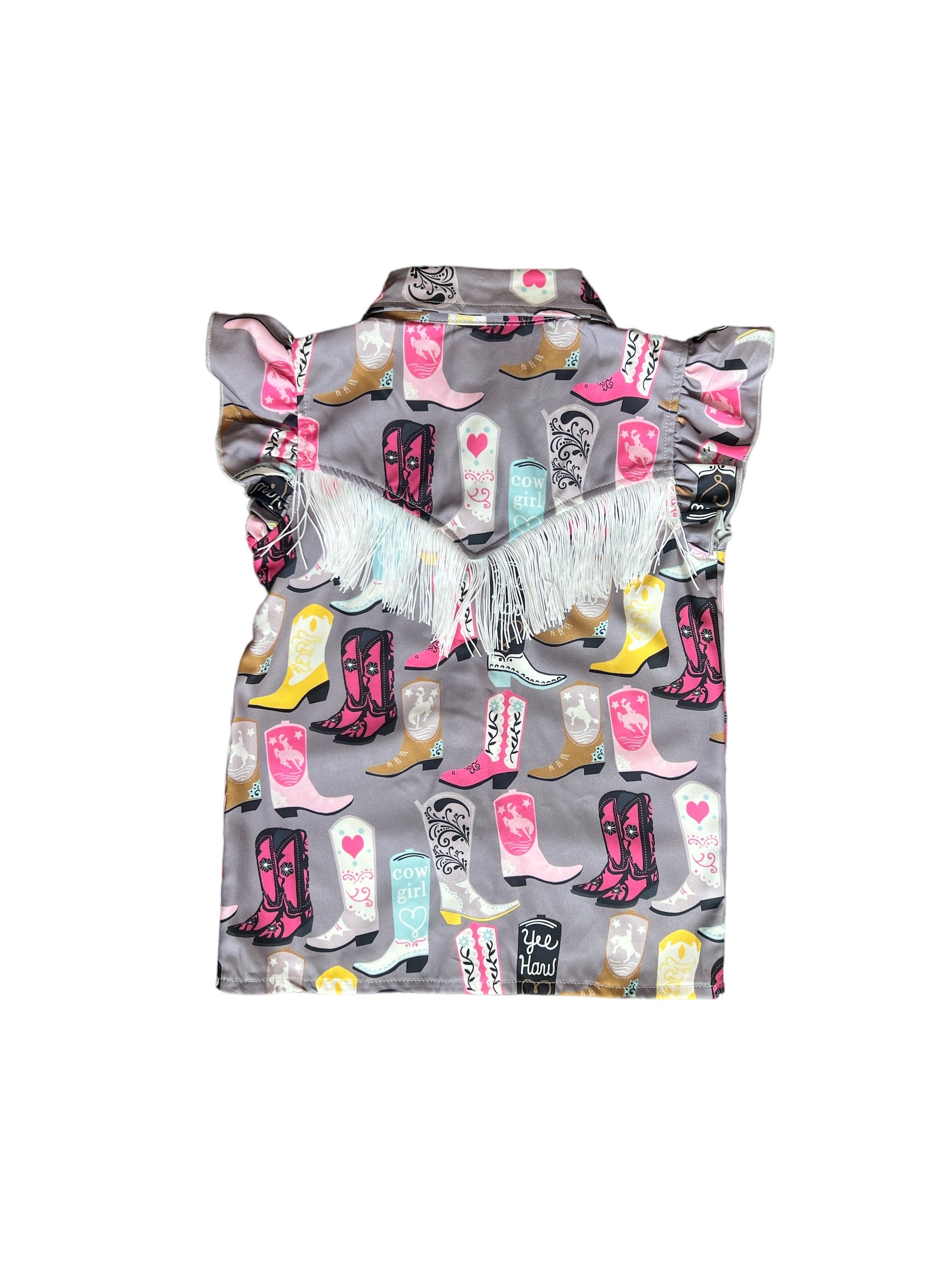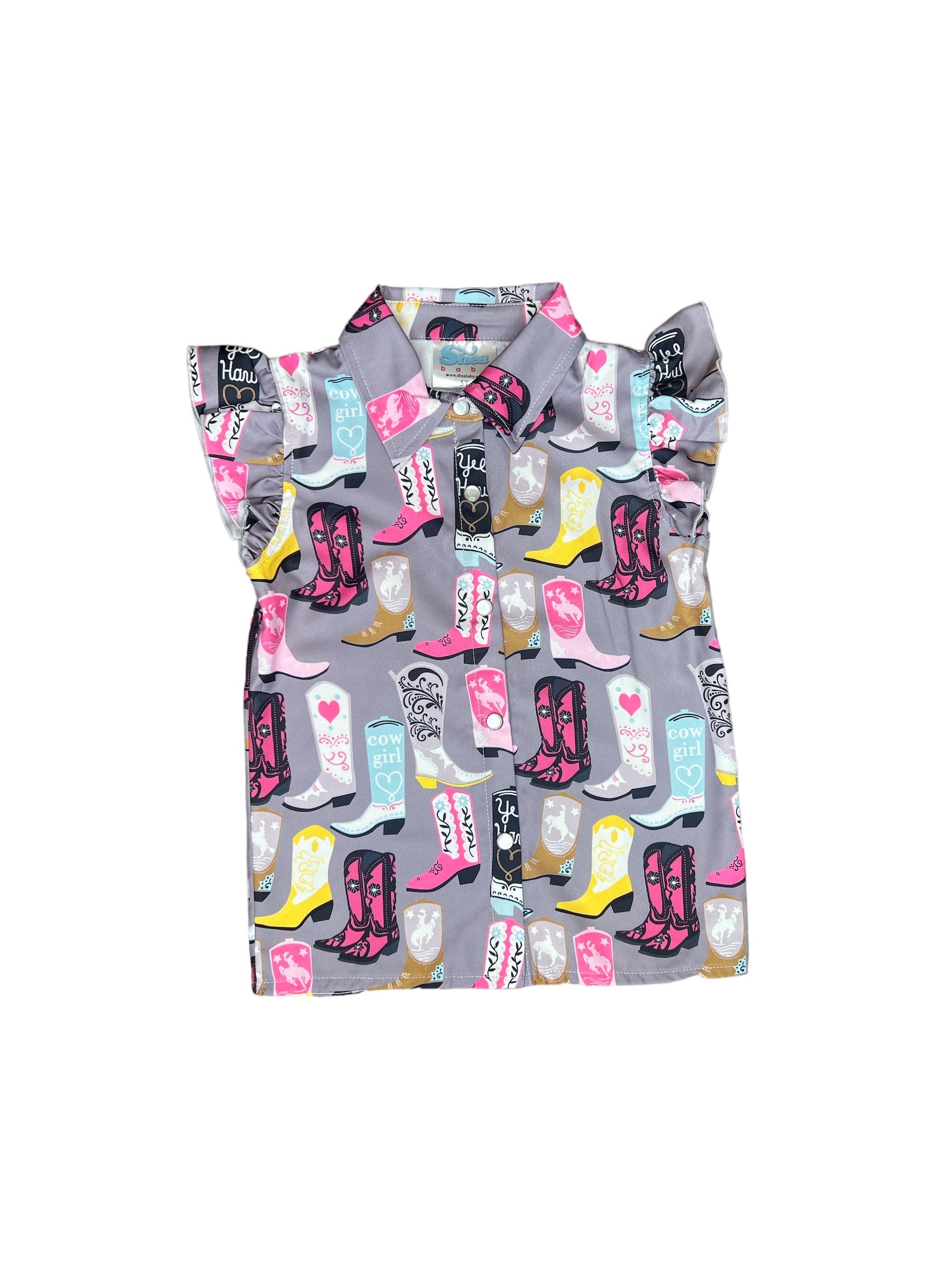 Grey Boot Ruffle Snap Shirt Toddler (2T-5T)