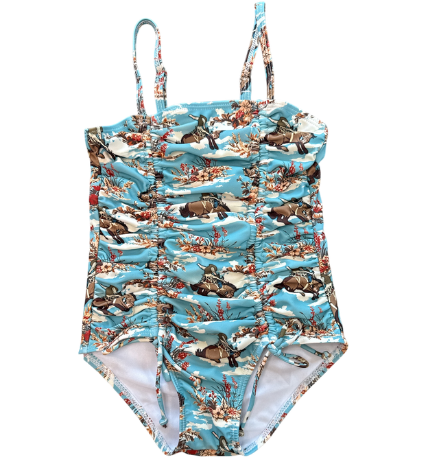 Make a splash with western flair! Comfortable, durable and stylish, this swimsuit is ideal for pool days or beach trips, its a must have for some summer fun!