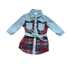 Our Aztec Denim Dress is the perfect blend of western charm & winter style. Crafted from high quality material this dress keeps your little cowgirl cozy in style! This is a must have this season!