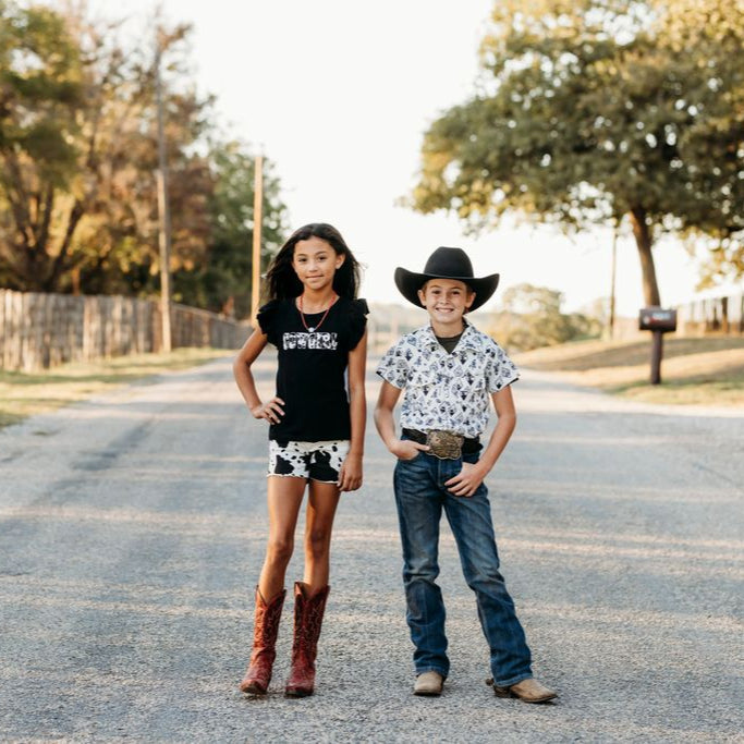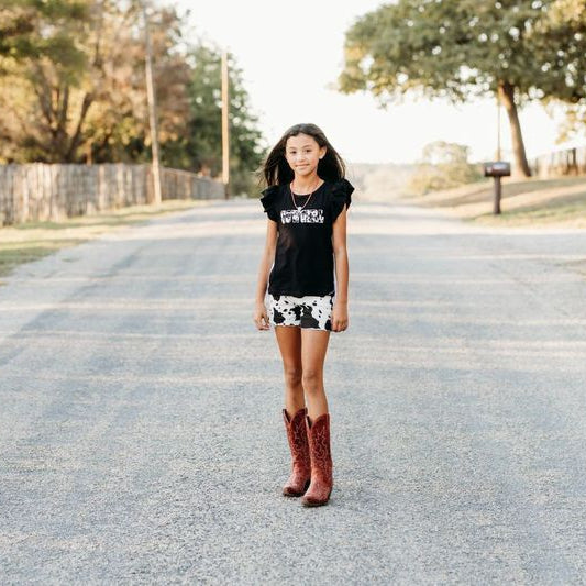 These black cowprint denim shorts are a perfect blend of western style and comfort! Made from soft, durable denim fabric, they feature a fun cowprint pattern that add a unique touch to any outfit!