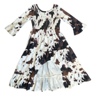 This beautiful Brown Cowprint High Low Dress is the perfect addition to any Fall and Winter wardrobe! This fun dress will leave your little one classy and stylish