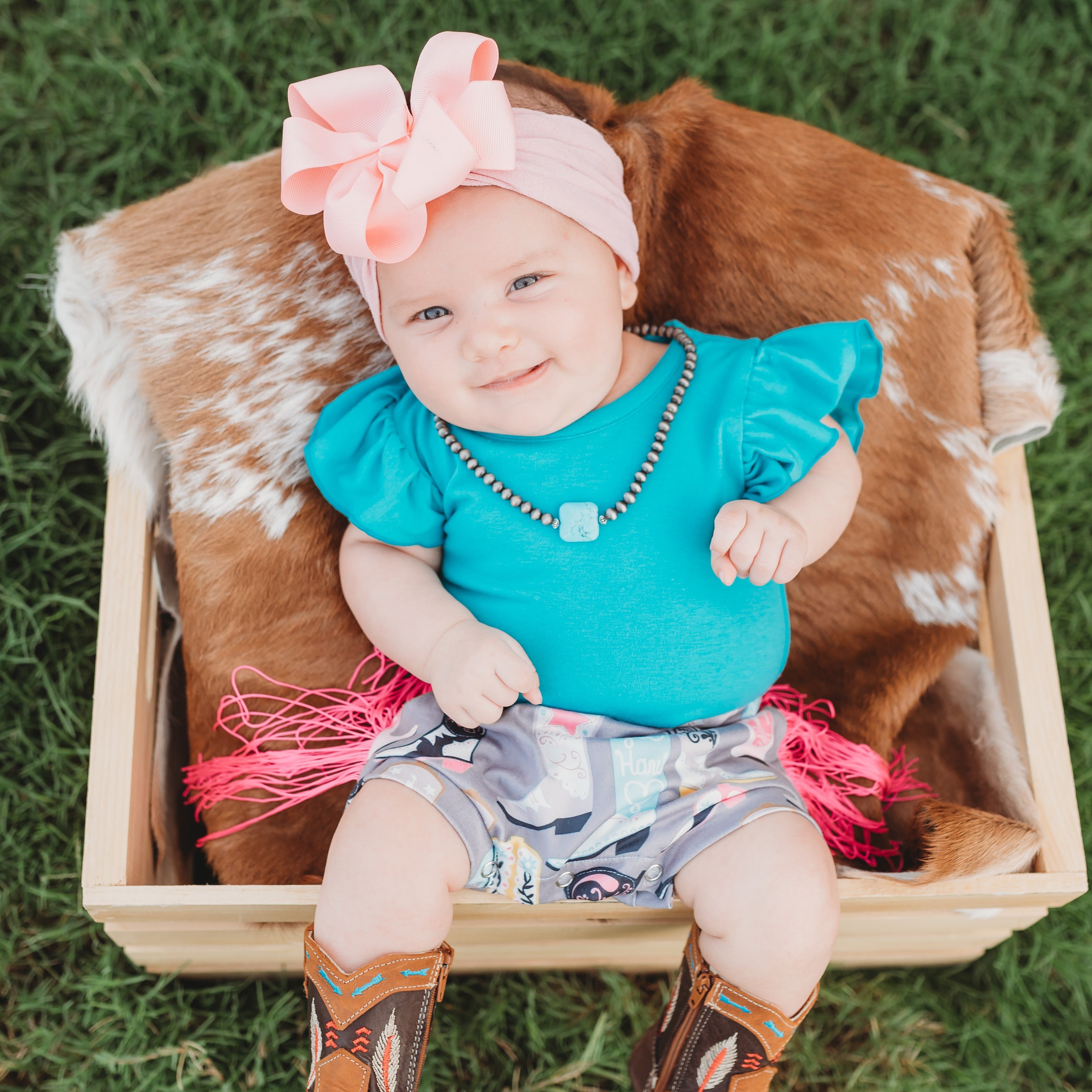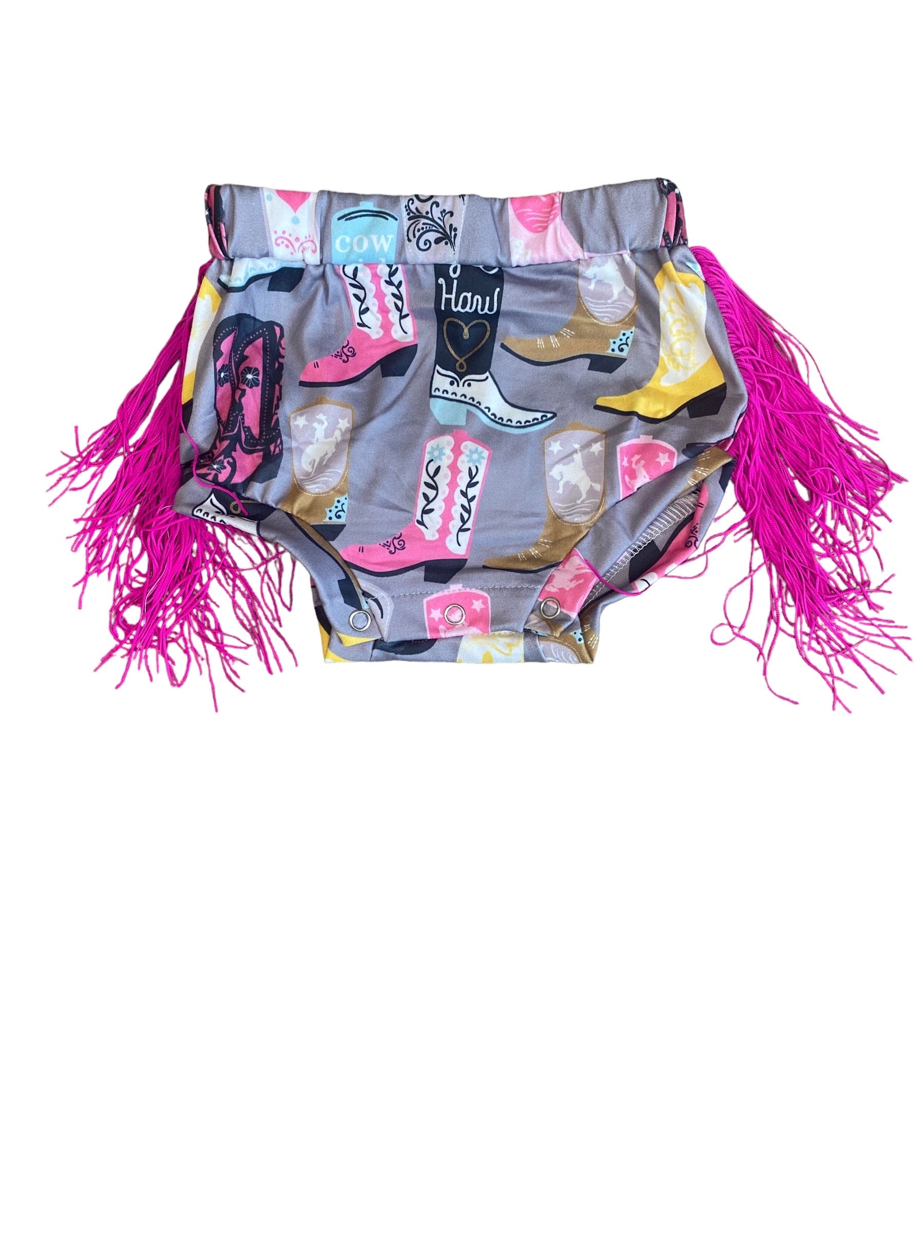 Stylish and Comfortable for even the tiniest cowgirls, these Boot Print bummers are adorable with a pop of fringe for fun! Keeping your cowgirls cool and stylish, these bummers are a must for Spring and Summer!