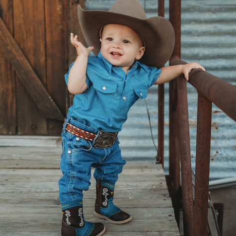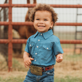 Crafted with stylish pearl snap buttons, this Short Sleeve Pearl Snap shirt will look handsome on your little one! The durable material makes this shirt perfect for family parties and days on the ranch. Shea Baby Short Sleeve Snap shirts are a must for every cowboy!