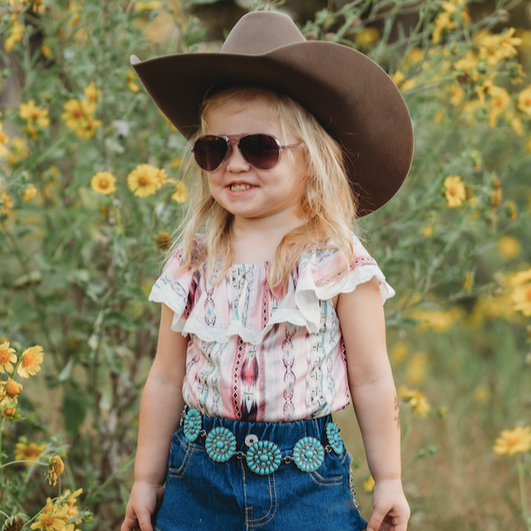 Our Southwest Lace Top onesie and shirt have all the lace to give it extra flare. Soft, comfortable and durable, this onesie and shirt will for sure make any little one feel & look special.