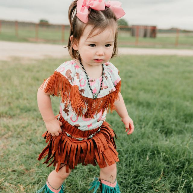 Our Cowgirl Teal Shirt is the perfect blend of comfort, style and durability!! This shirt is perfect for family parties or days on the ranch. This is a must have in your little girls Summer wardrobe!